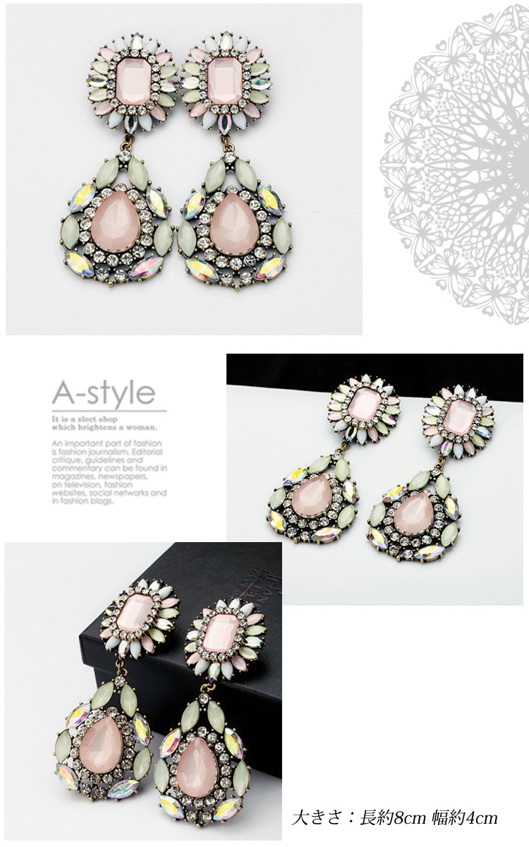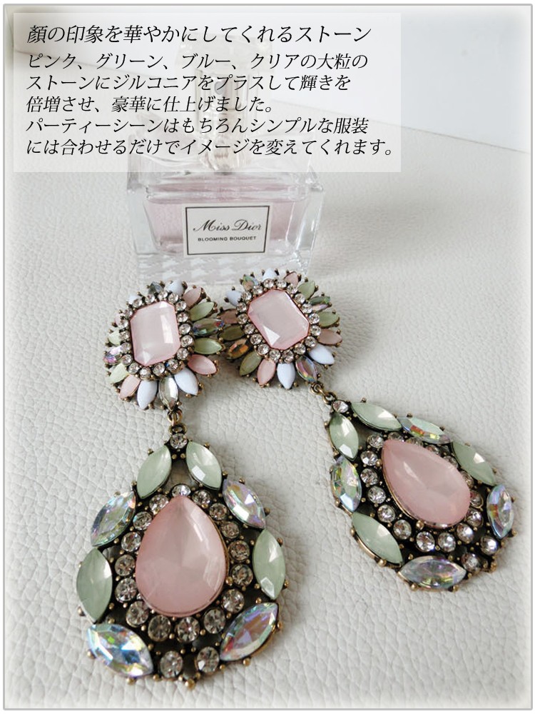 『メール便送料無料』クリアの大粒のストーンにジルコニアをプラスして輝きを倍増させ、豪華に仕上げました。リゾートピアス、夏ピアス、ピアス、レディース『セール品のため、返品交換不可』