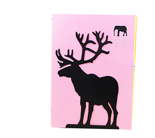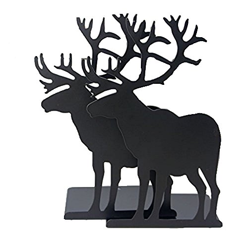 Fashion Creative Cartoon Cute Iron Elk Moose Pattern Nonskid Metal Office Desk Bookends (Black)
