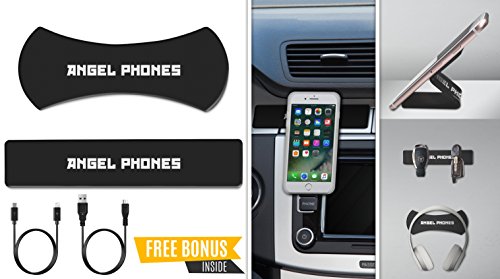 Mobile Phone Holder Car Bracket Multi-Purpose Kit (2Pack) SuperStrong Use at Home or Office Sticks on Glass, Metal, Plastic, Tiles and Many More PLUS Limited Time Offer FREE USB SuperCharger (Android)