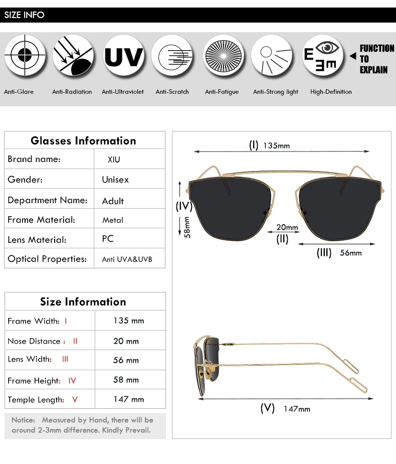 Lens Function:100% UV400 Protection Against Harmful UVA/UVB Rays