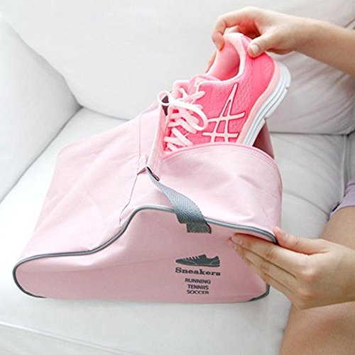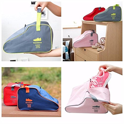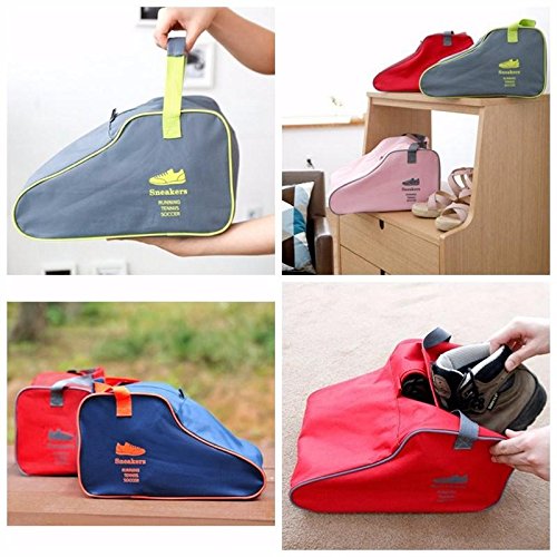 Easy to carry, portable and convenient to organize shoes. A great bag to carry in gym or sporty situation, can put water bottle, shoes and towels inside. Size : 33*23*18.5cm Type : Portable Shoes Storage Bags Color: Gray / Navy blue / Red / Pink