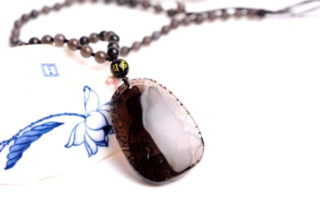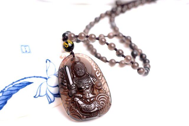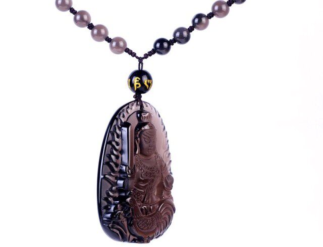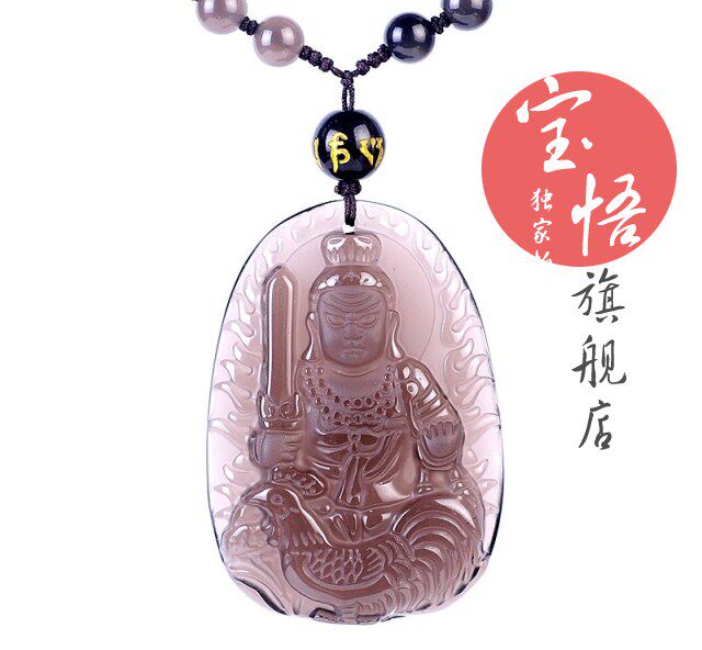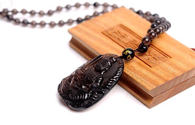 开光天然冰种磨砂黑曜石生肖鸡黑曜石不动明王本命佛吊坠