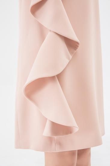 ワンピース パーティードレス 長袖 ドレープ オレンジピンク ひざ丈 ハイネック エレガント 上品 大人 drgz0566