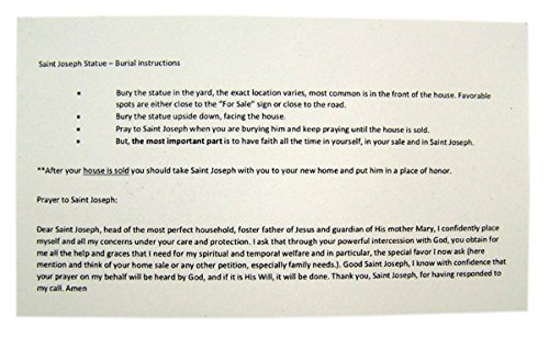 Religious Gifts Saint Joseph Statue Home Seller Kit with Prayer Card and Instructions