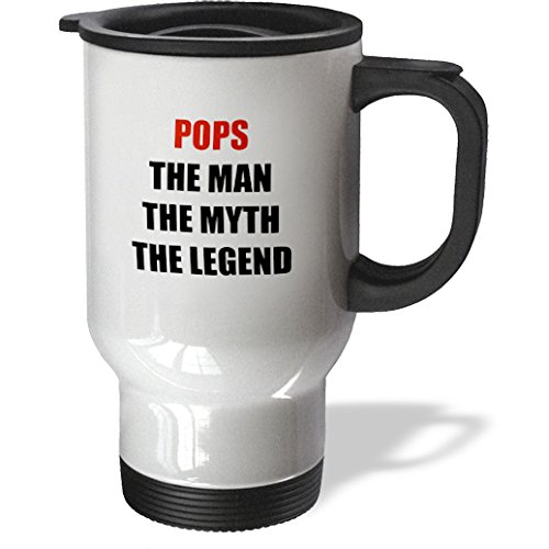 3dRose tm_202808_1 Pops The Man The Myth The Legend Stainless Steel Travel Mug, 14 oz, White