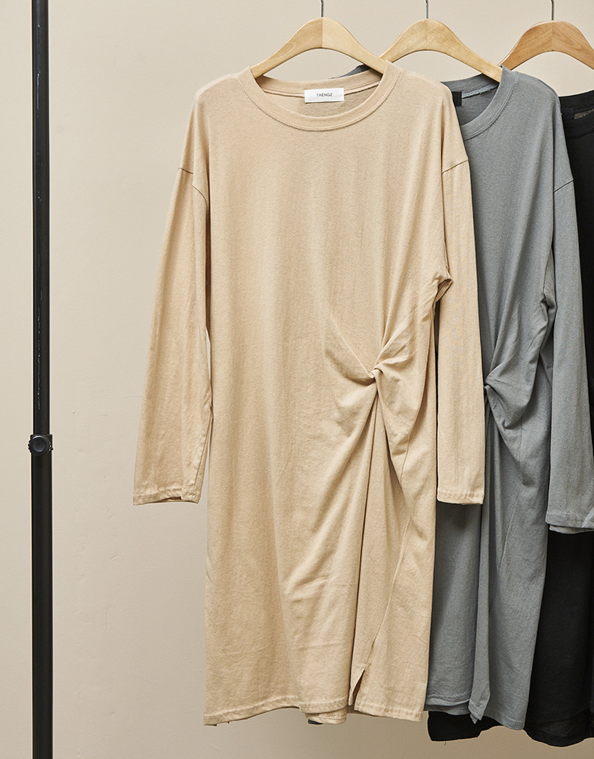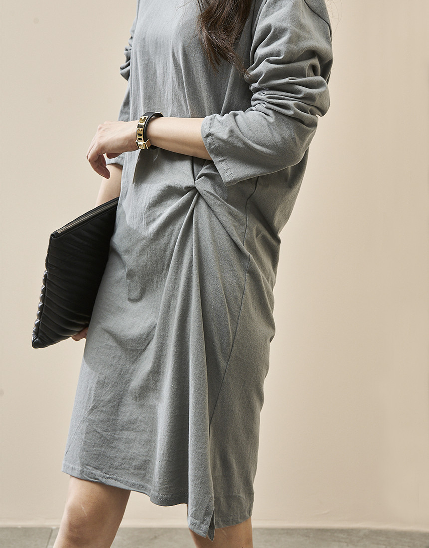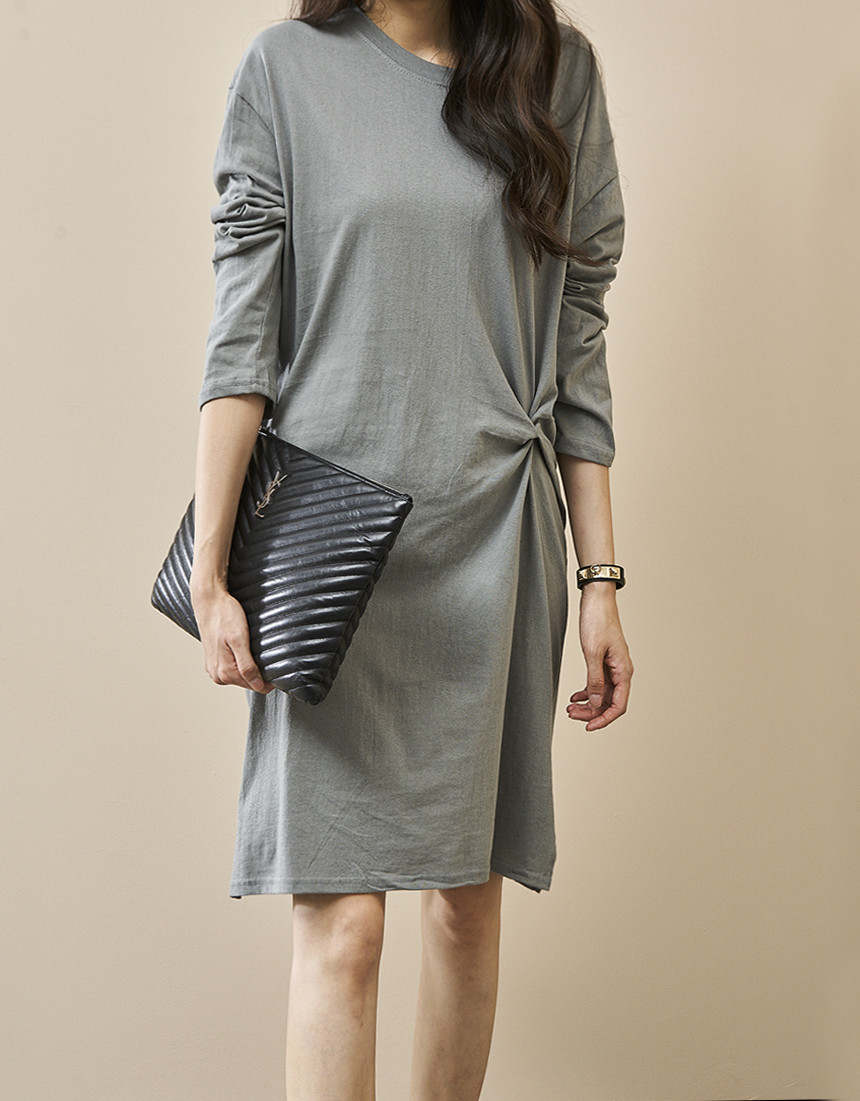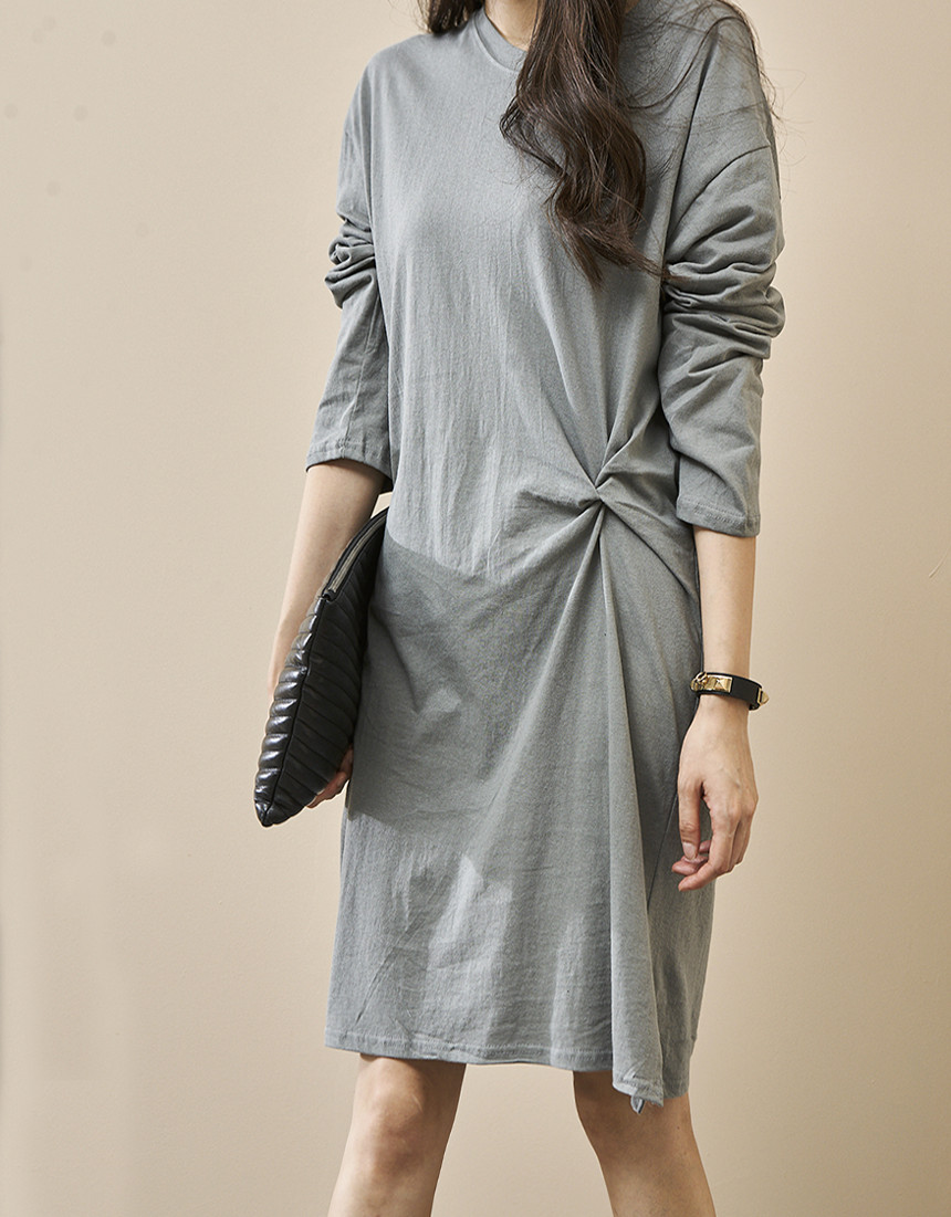 # 허리 꼬임 긴팔 원피스