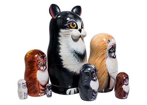 -. Title : Black & White Cat Russian Nesting Doll 7pc./7"