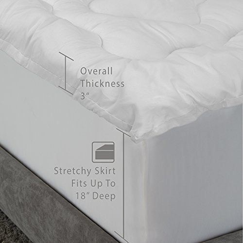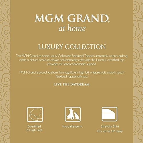 -. Brand : MGM GRAND at Home -. Feature : Soft cover of 100% microfiber / 2.5-in. thick top of polyester fiber fill / Offered in standard sizes / Stretchy polyester skirt fits beds up to 18 in. high / Quilted top and elastic enclosure -. Label : Rio Home Fashions -. Manufacturer : Rio Home Fashions -. MPN : FB-019-1T -. PackageQuantity : 1 -. PartNumber : FB-019-1T -. ProductGroup : Home -. ProductTypeName : HOME_BED_AND_BATH -. Publisher : Rio Home Fashions -. Studio : Rio Home Fashions -. Title : 2.5 in. Overfilled Quilted Fiberbed Topper by MGM GRAND at Home
