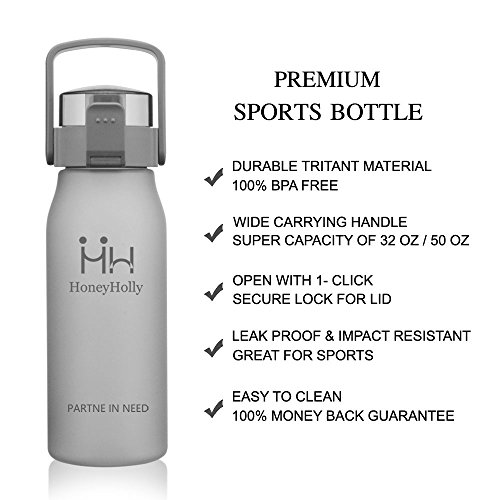 ECO-FRIENDLY MATERIAL - Made from high quality durable Tritan copolyester toxin free food grade plastic, Food Grade PP material lid, Food Grade Silicone seal ring. Best Water Bottle which is do no harm to our body and it is environmentally friendly that can hold up to tough conditions. No "plastic" taste at all. Updated features include 100% leak-proof loop top, ergonomic flip cap, and Practical nozzle.making it the PERFECT GIFT for that active someone on the go.