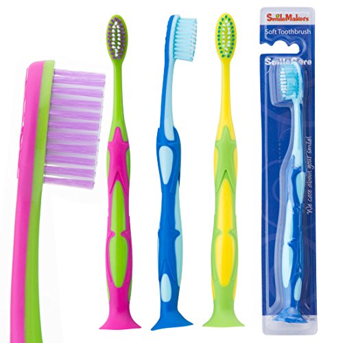 -. Feature : SmileCare Pre-teen Star Preformance Toothbrushes - Dental Hygiene Products - 48 per Pack / Features 36 tufts and 4 rows of soft DuPont nylon bristles on a rounded head / Includes a tongue cleaner, rubber grip and a suction cup bottom to keep the brush uP.R.Ight and off dirty counters / Assorted colors