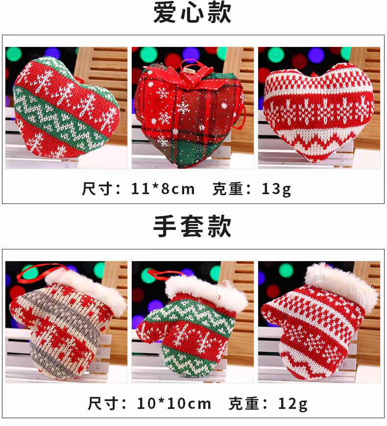 港恒圣诞树布艺装饰挂饰 手套针织圣诞节礼物礼品装饰布置用品