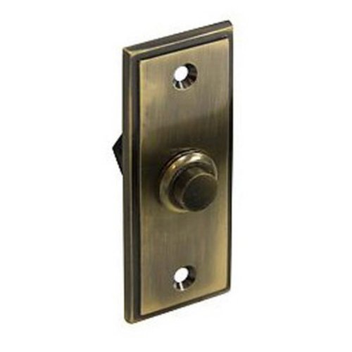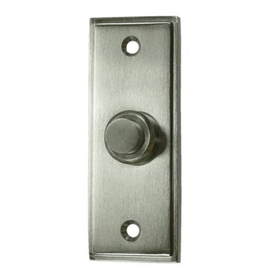 Rectangular contemporary bell button. Solid brass. Pictured in Satin Nickel. 3.33 in. L x 1.33 in. W.