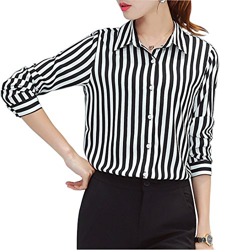 -. Title : キャリア ウーマン ストライプシャツ レディース キャリア OL 七分袖 襟付き とろみシャツ きれいめ ブラウス トップス