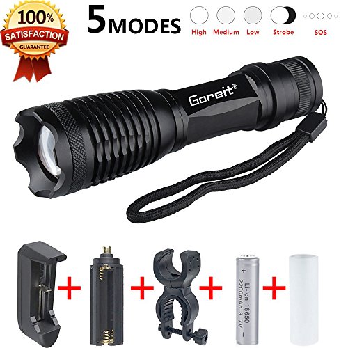Goreit® E6 Super Bright 900 Lumen Flashlight,Zoomable CREE XML T6 bicycle Light,Ajustable Focus 5 Modes + 18650 Battery and charger + 360°bicycle mount,For Cycling Hiking Camping.