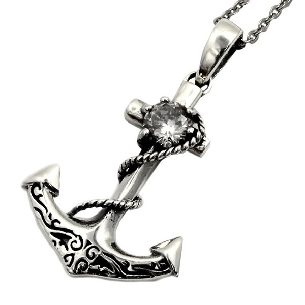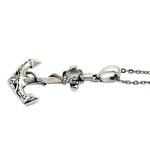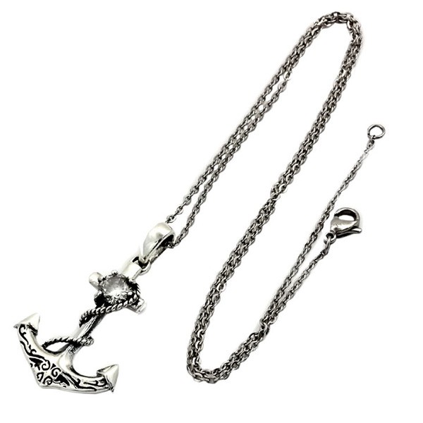 囚われのアンカー(錨)Royal Jokerボンテージアンカーペンダント。錨のモチーフに巻きついたロープがダーティークールなペンダント。ホワイトCZ(キュービックジルコニア)がワンポイントでセットされ、まるで宝石のように煌めく。ブラックの石もあるのでペアでもつけることができます。本物のシルバーだから出せる質感が堪能できるアイテムです。専用のケースが無料で付属するので、プレゼント・ギフトにとってもオススメです。
