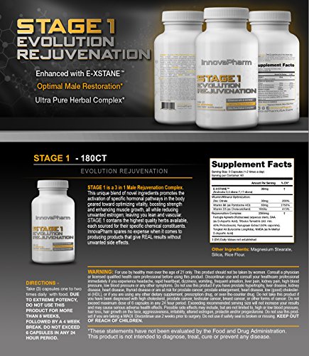 Studio : INNOVAPHARM Publisher : INNOVAPHARM Binding : Health and Beauty Product Description STAGE 1 is a 3 in 1 Male Rejuvenation Complex. This unique blend of novel ingredients promoted the activation of specific pathways in the body necessary to help restore natural testosterone levels and optimize vitality, all while reducing unwanted estrogen. In turn, leaving you leaner and more vascular for overall body recomposition. STAGE 1 contains the highest quality herbs and extracts sourced from various continents across the world. 0