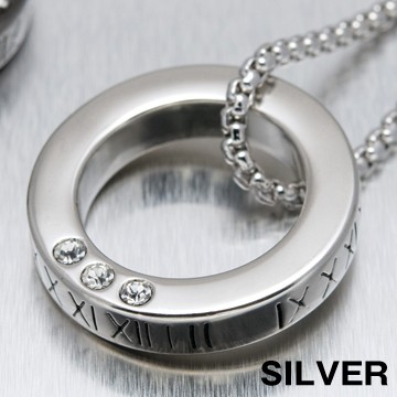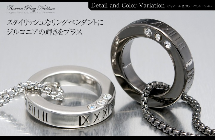 ローマ数字が刻印されたリングにはジルコニアの輝きをプラス。