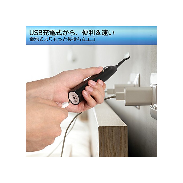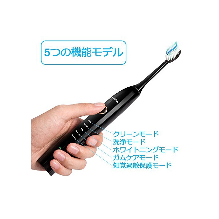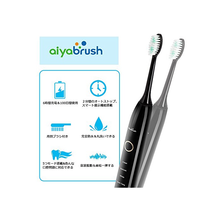원본상품명: 電動ブラシ 5つモド (替えブラシ付) 音波振動 充電式 IPX68防水 口臭防止マッサジしたい方におすすめ AiyabrushZR501 (ブラック)
