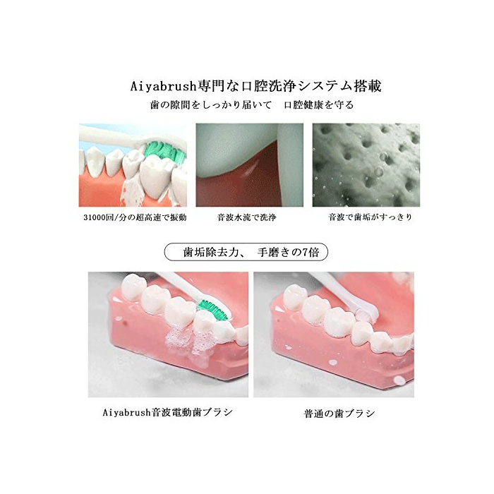 【구강 상황 개선& 어금니까지의 치석 잡힌다】AiyaBrush의 전동 칫솔을 이용하면 치과의사씨에게 가는 횟수가 감#고, 구강 상황을 명백히 개선 되고 있는다.브러시 부분은 가늘기 때문에,세세한 곳까지 닦는 것은 쉽다.수연마 보다 제균힘이 좋다.