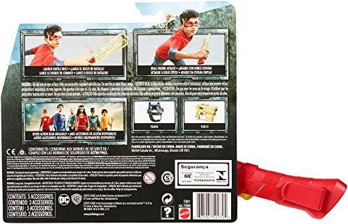 -. Feature : New Justice League movie role play gear for The Flash / Includes one weapon, one projectile, and one iconic mask / Load the disc and fling the weapon to watch it fire! / Collection also includes Batman, Superman, Aquaman, and Cyborg role play gear! / Each role play set sold separately