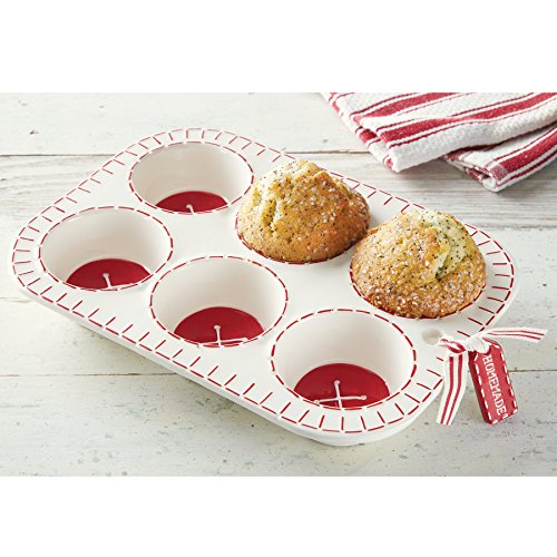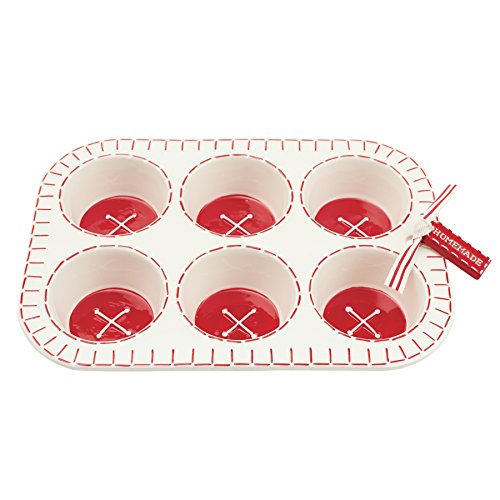 Mud Pie 4805004 Homemade Muffins Ceramic Pan, White