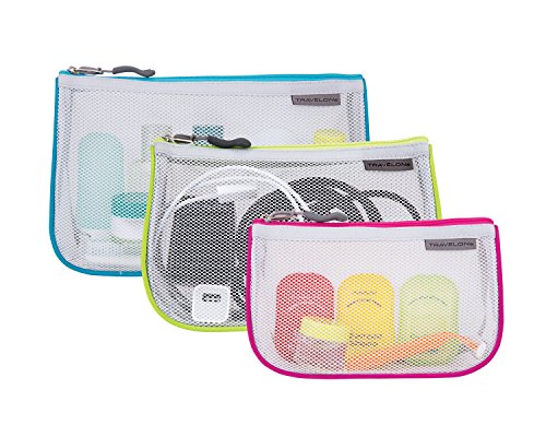 -. Feature : Breathable mesh front panel for visibility / Top zip pouches with ripstop back panel / 3 assorted sizes with colorful accent piping / Nest for compact storage / 9x2x6