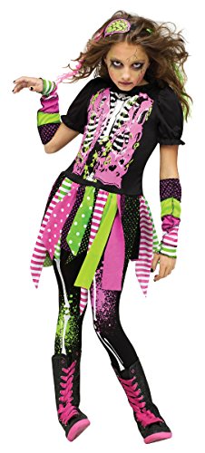 -. Brand : Fun World -. Color : Multicolored -. Department : girls -. Feature : Hand Wash in Cold Water. / No Bleach. / Line Dry. / Includes: Dress, Sleevelets, Footless Tights, and Brain Accent Headband / Sizes: Small (4/6), Medium (8/10), Large (12/14) -. Label : Fun World -. Manufacturer : Fun World -. MPN : FW111382LG -. PackageQuantity : 1 -. PartNumber : FW111382LG -. ProductGroup : Apparel -. ProductTypeName : APPAREL -. Publisher : Fun World -. Size : Small 4-6 -. Studio : Fun World -. Title : Neon Zombie Girl Kids Costume