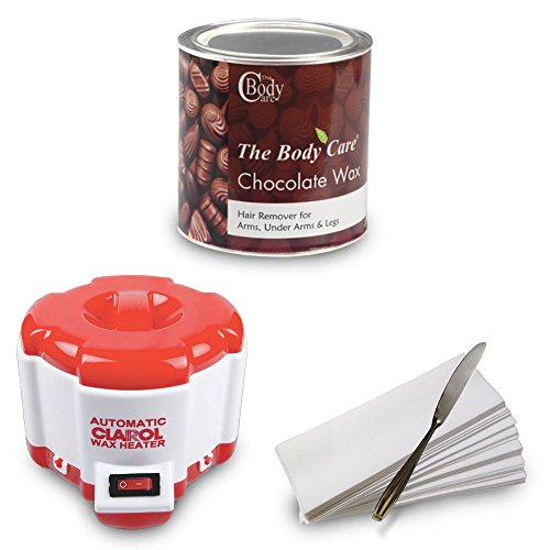 Studio : The Body Care Publisher : The Body Care Binding : Health and Beauty Product Description This package contains 1) 1 21.1 Ounces The Body Care Chocolate Wax. 2) 1 Clarol Automatic Wax Heater - A006. 3) 50 Wax Strips. 4) 1 Waxing Knife. 1) Chocolate Wax: Chocolate Wax Melts easily, spreads evenly, Sticks Properly Pulls of Painless, in a jerk Chocolate Wax Strips-Clean. No Mess. No Threading. DIRECTION OF USE : Place wax can in heater and turn on maximum setting for a quick melt. Occasionally stir wax until proper consistency has been reached. Turn heater down to normal temperature. Wash skin clean and dry thoroughly. During excessive humidity sprinkle ordinary talc on skin, then apply wax. Apply melted wax with a knife or spatula in the direction of hair growth. Place a strip of cloth over the wax-press firmly and pull in the opposite direction. Repeat the process in quick steps. Do not allow wax to cool off. Clean skin with wet sponge or cloth. Use The Body Cares After Waxing Cream for soothing and cooling effect of depilated skin. 2) Automatic Wax Heater - A006: The Clarol wax heater helps make heating wax a hassle free experience. Its distinguishing feature includes a temperature controlled automatic on-off switch. This Prevents overheating of wax and reduces the chances of burn. The compact and light weight design makes it an apt choice for both personal and professional use alike. 3) Wax Strip: Perfect for body and face. Before use, make sure the skin is absolutely clean. Apply the wax over the area to be waxed. Place this non-woven fabric strip or wax strip over waxed area. Tear off the hair-removal paper in the reverse direction that the hair grows. 4) Wax Knife: Wax knife for professionals to carry on their waxing sessions. Made from high grade stainless steel, it is extremely durable and safe to use. It gives you a smooth silky finish after each use. 0