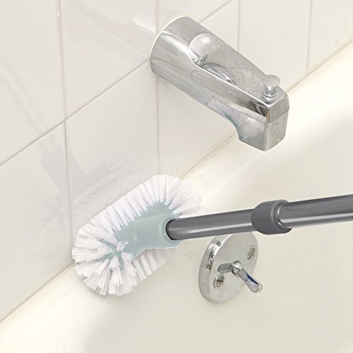 -. Feature : Casabella bristle everywhere scrubber makes tough cleaning jobs easier / Rounded head fits into curved and hard-to-reach spots / Tough bristles for cleaning floors, tile grout, drains, and around sinks and toilets / Adjustable pole extends from 32 to 53-1/2 inches / Measures 52-1/2-inch long overall with 5-inch by 3-inch head