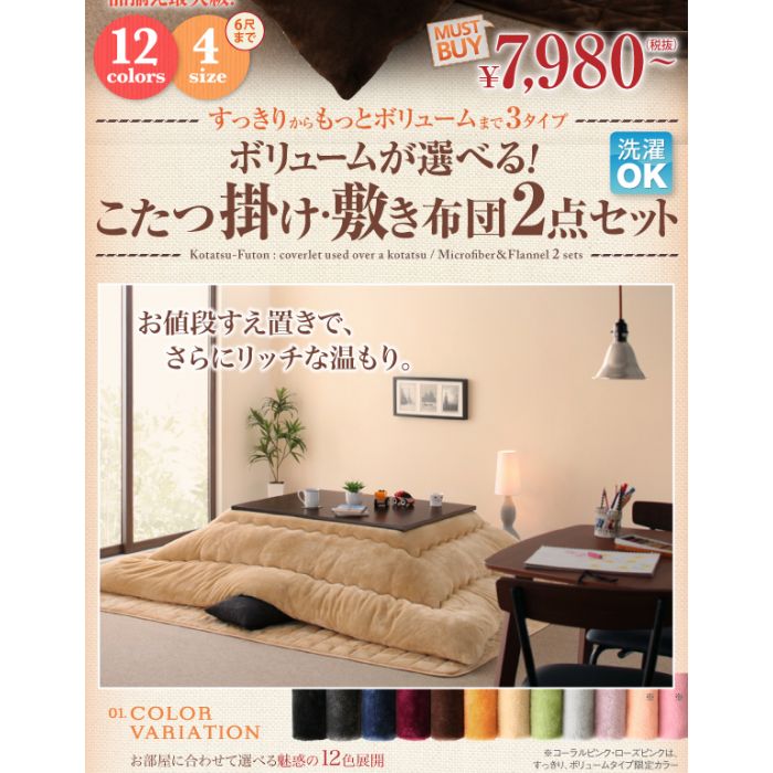 Rakuten 볼륨을 선택할 수 있다! 마이크로 화이버(fiber) flannel 난로 걸이깔아 이불2점 세트 더 볼륨 타입 4 척직사각형 「침구 난로 이불 세트 마이크로 화이버(fiber)