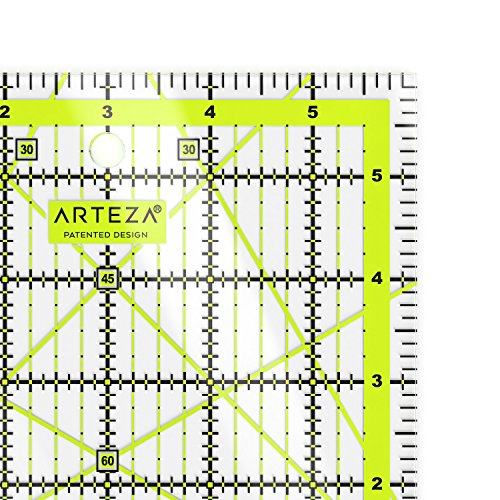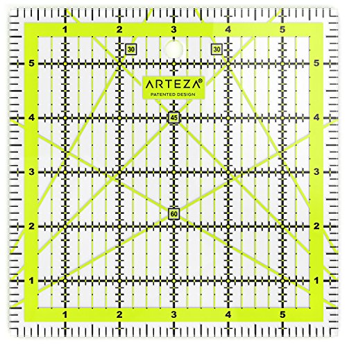 Arteza Acrylic Quilters Ruler - 6 x 6 inch - Double-Colored Grid Lines