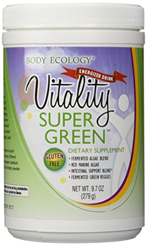 -. Binding : Health and Beauty -. Brand : Body Ecology -. EAN : 0758000100083 -. Feature : Will soothe and help rebuild the lining of your intestines / Helps establish and maintain a healthy mucosal lining / Rebuild and strengthen your immunity and to create new vitality / All natural "green food" -. Label : Body Ecology -. Manufacturer : Body Ecology -. Model : BE005 -. MPN : BE005 -. NumberOfItems : 1 -. PackageQuantity : 1 -. PartNumber : BE005 -. ProductGroup : Health and Beauty -. ProductTypeName : HEALTH_PERSONAL_CARE -. Publisher : Body Ecology -. Studio : Body Ecology -. Title : Body Ecology Vitality SuperGreen Powder 9.7 Oz. -. UPC : 758000100083
