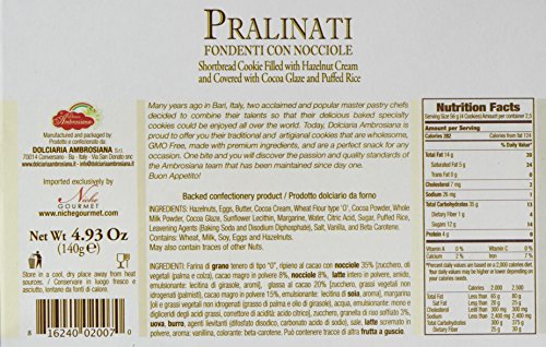 Dolciaria Ambrosiana Pralinati Fondenti Con Nocciole Cookie Filled with Glaze and Puffed Rice, Shortbread with Hazelnut Cream/Cocoa, 4.93 Ounce