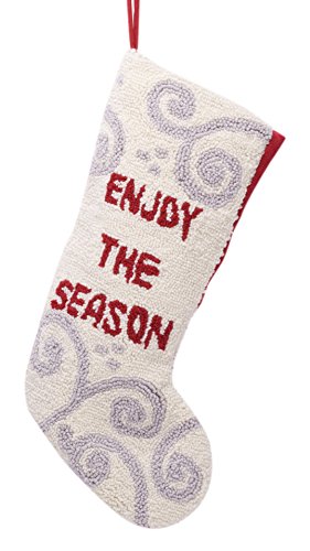 Glitzhome Handmade Hooked Christmas Stocking, "Enjoy The Season", White