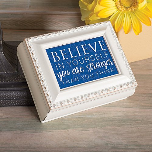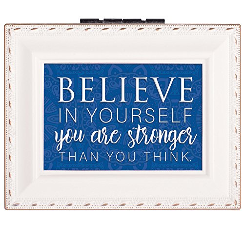 Believe You Are Stronger Than Ivory and Gold Trim Tiny Square Keepsake Box