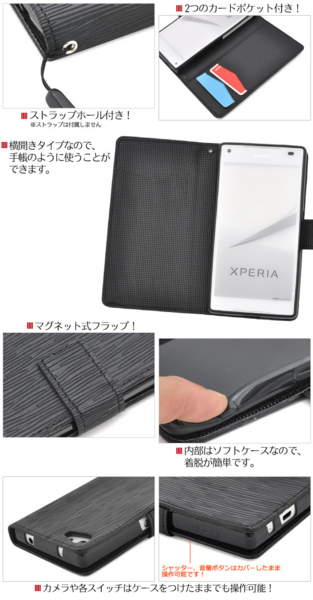 Xperia Z5 Compact SO-02H用スタンドケースポーチ。
