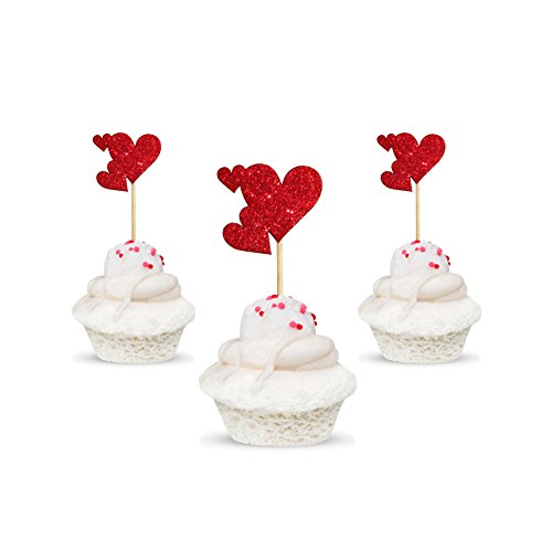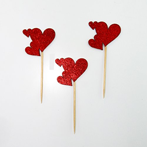 Valentine's Day HeartCake Topper Glitter Cardstock Color Red 12pc