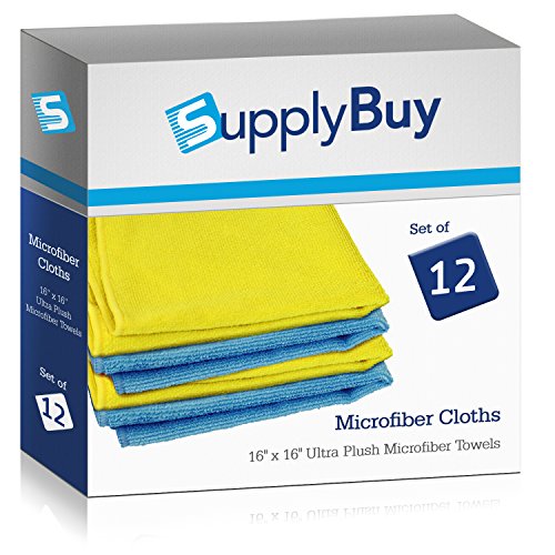 SupplyBuy Ultra Premium Plush Microfiber Towels | Streak-Free Cleaning Cloths | Pack of 12 - 16x16 (16" x 16")
