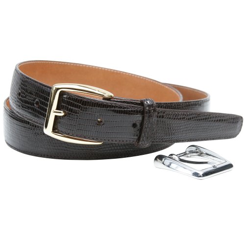 This genuine lizard belt has a drop stitched edge meticulously hand crafted for a unique look, and noted extraordinary hand feel.