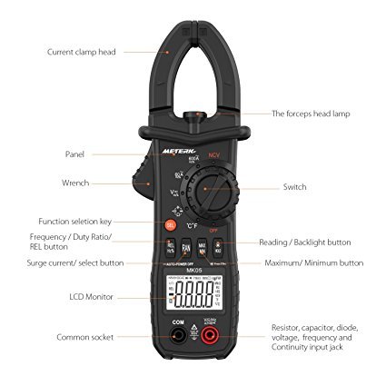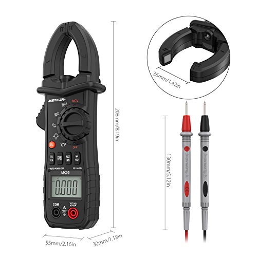 Meterk Portable Handheld 6000 Counts Digital Clamp Meter NCV AC/DC Voltage LCD Display Auto Range AC Current Clamp Multimeter Capacitance Resistance Frequency Temperature Measure Diode Hz Tester