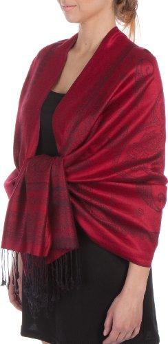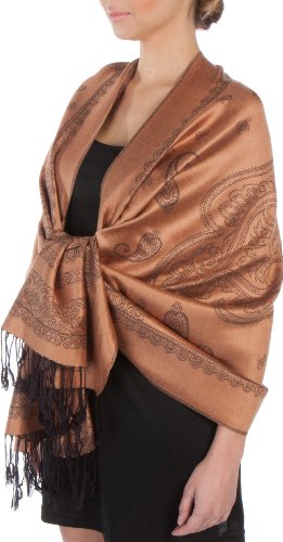 | Sakkas Lightweight Two Tone Paisley Design Pashmina Fringe Scarf / Stole / Wrap |