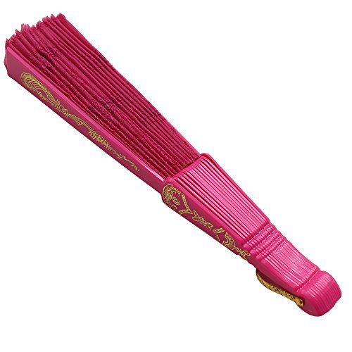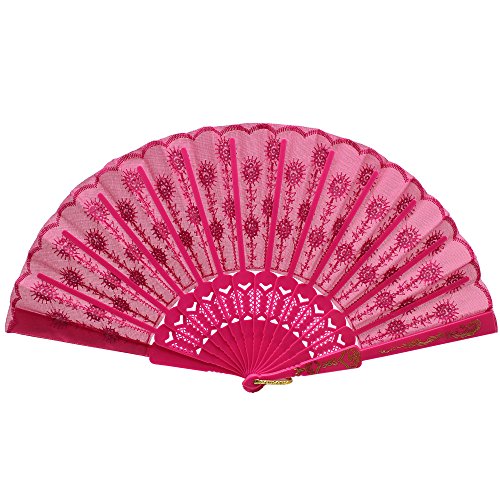 Newstarfactory Full Color Collection Embroidery Sequins Plastic Cloth Folding Fan with Exclusive Gift (Hot Pink)