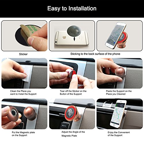 EASY TO USE a Magnetic Phone support-Simply stick the included adhesive metallic disk to the back of your phone, and place the phone with metallic disc centred over the magnetic vehicle mounts. The magnetic car support high quality 360-degree ball mount allows you to adjust to any angle, so you can keep your phone FULLY IN VIEW ALWAYS.