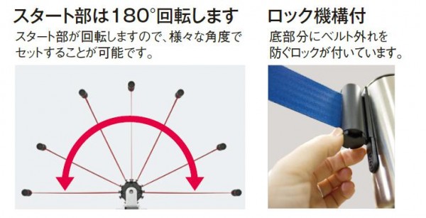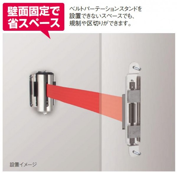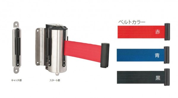 | 仕様 | 壁面ネジ固定 仮固定用マグネット付 ベルト長さ:約1.7m スタート部:180度回転 ロック機構付 |