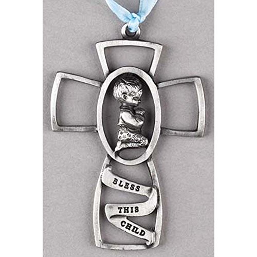 Bless This Child Praying Little Boy 3 Inch Pewter Crib Cross