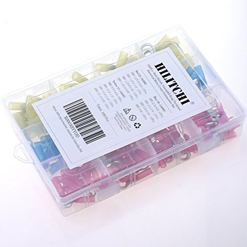 Hilitchi 180Pcs Nylon Insulated Heat Shrink Ring Terminal Electrical Wire Crimp Connectors Set, Yellow, Blue, Red