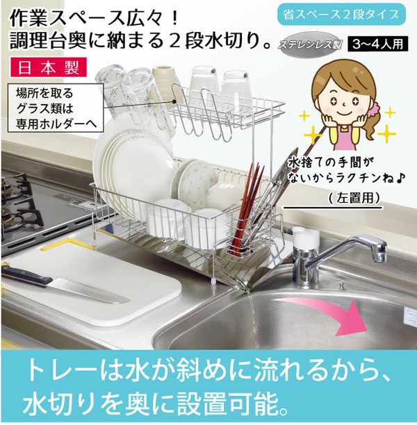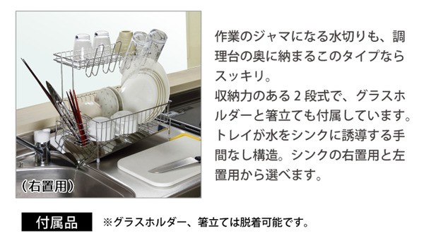 【商品名】斜めに水が流れる 2段水切りラック 右置用(日本製)