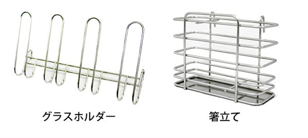 収納力のある2段式で、グラスホルダーと箸立ても付属しています。