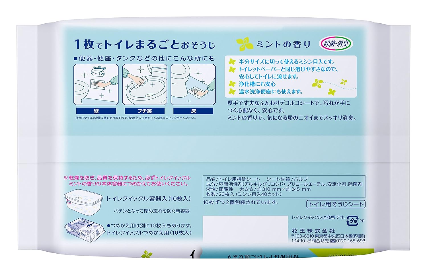 厚手で丈夫なふんわりデコボコシートなので、便座・便器まわりから床・壁まで「1枚でトイレまるごとおそうじ」。汚れが手につく心配もなく、快適にふきそうじができます。