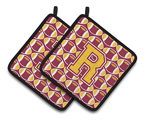 Caroline's Treasures Letter R Football Maroon & Gold Pair of Pot Holders CJ1081-RPTHD, 7.5HX7.5W, Multicolor